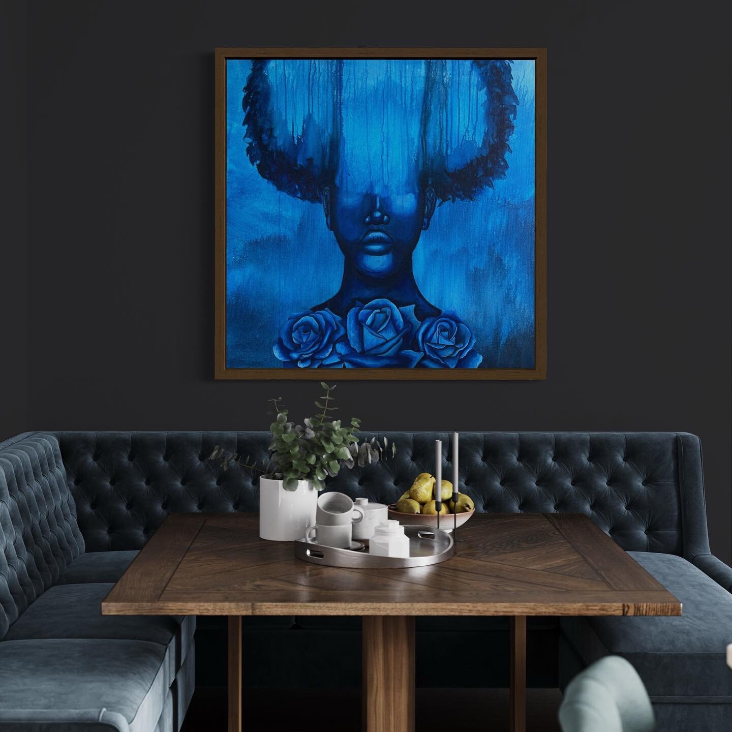 “Feeling Blue?” Trying new techniques and style let me know if you feeling it! I loved doing this and feel it came out dope. Fun fact most of this painting I actually painted with the canvas upside down.