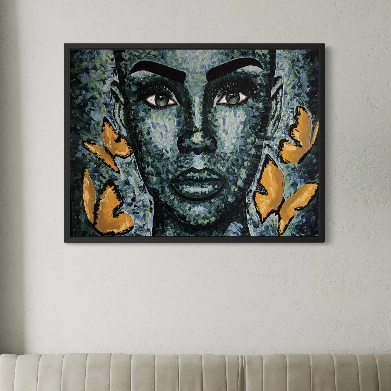 This work is delivered stretched onto frame.
