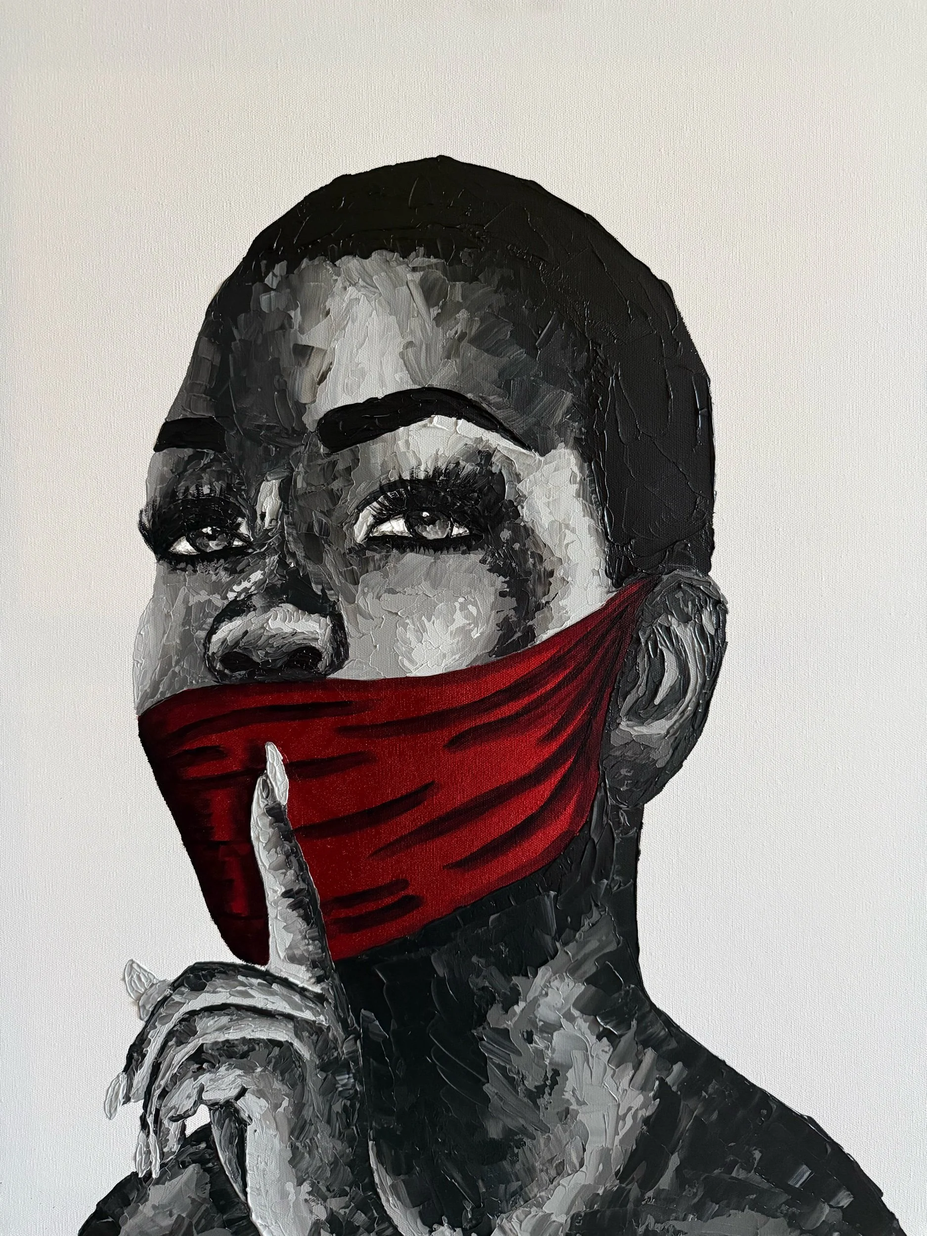 Materials: Acrylic and red foil on cotton canvas